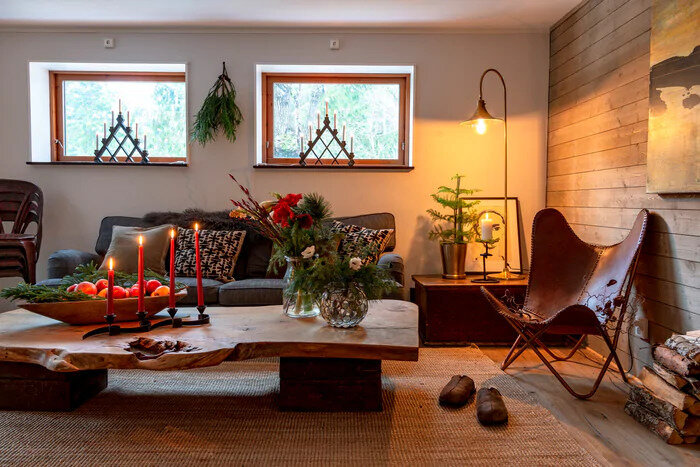 Encore une belle inspiration pour se mettre dans l'ambiance des fêtes! Aujourd'hui je vous emmène dans la forêt suédoise visiter cette jolie maison décorée pour Noël. J'adore son esprit rustique et sa déco naturelle faite de branches de sapin, de fleurs et de bougies. Et si l'intérieur se fait hyper chaleureux avec son feu de cheminée, les extérieurs ne sont pas en reste avec leur multitude de points lumineux, guirlandes ou lanternes, et leurs fauteuils recouverts de peaux de mouton.